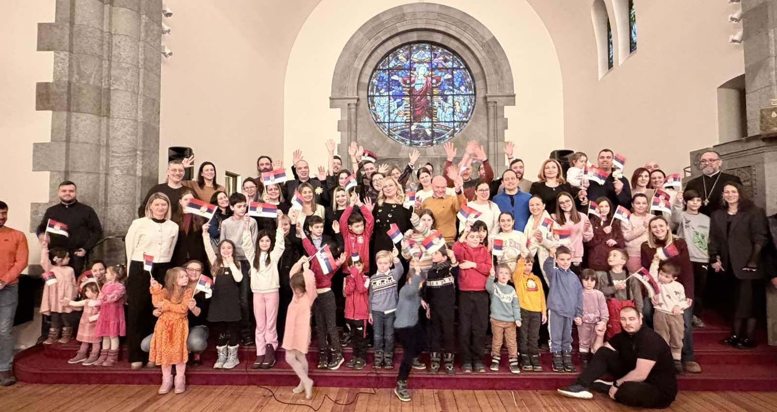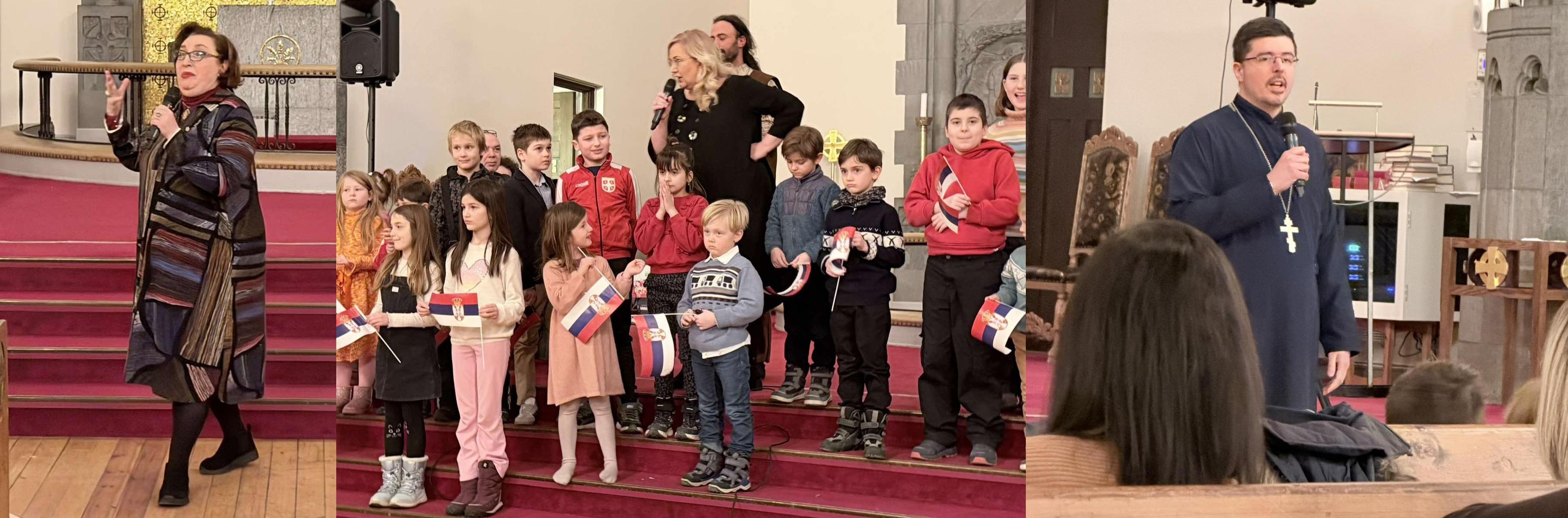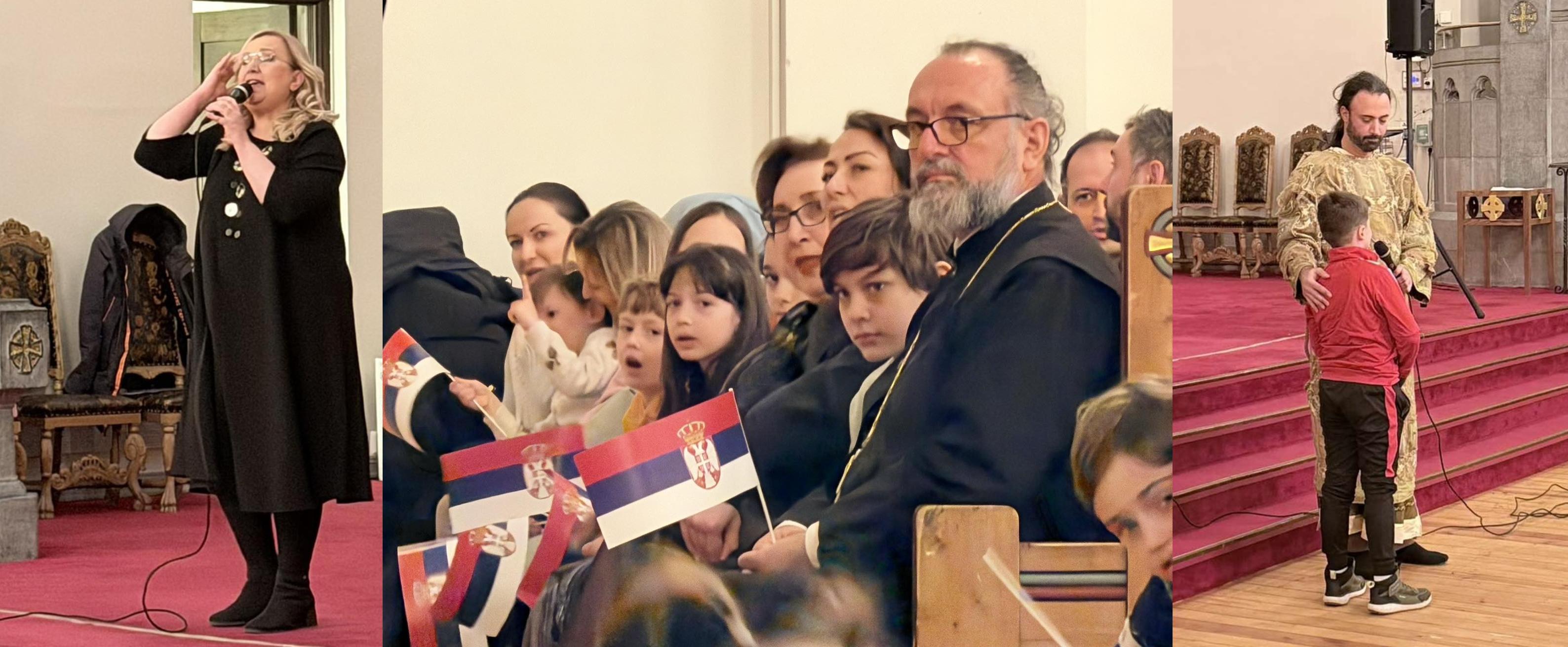 Овогодишњу прославу рођендана наше отаџбине посветили смо најмлађима у расејању. Програм је водио Лазар Крајновић, обратили су се беседама амбасадор др Јасмина Митровић-Марић и свештеник Драган Јованов. Они су своје сународнике упутили у двојаки значај овог великог празника као истинске, суштаствене везе цркве, државе и народа.